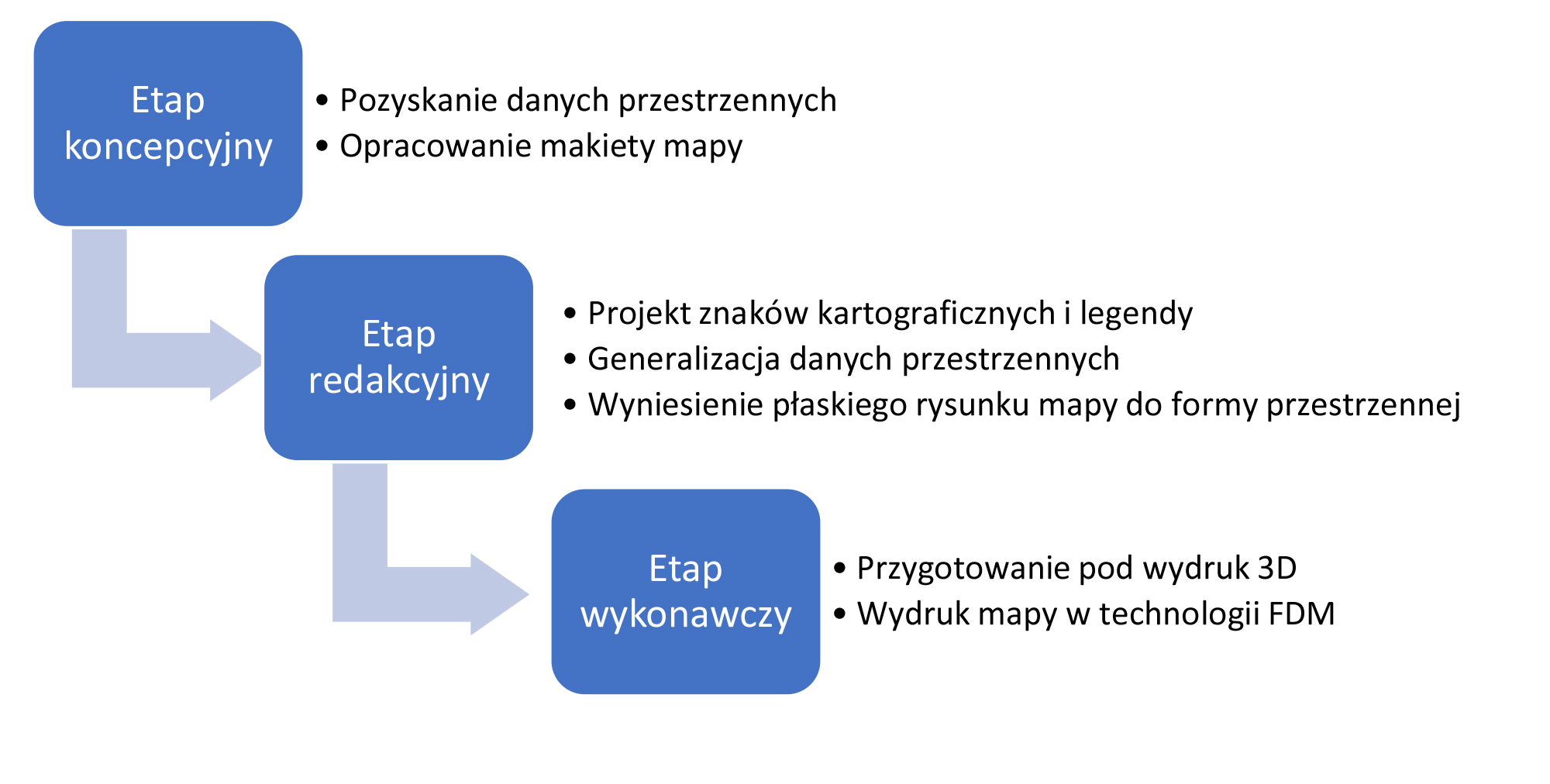 Rys. 3. Procedura opracowania mapy dotykowej z wykorzystaniem techniki druku 3D, źródło: opracowanie własne.