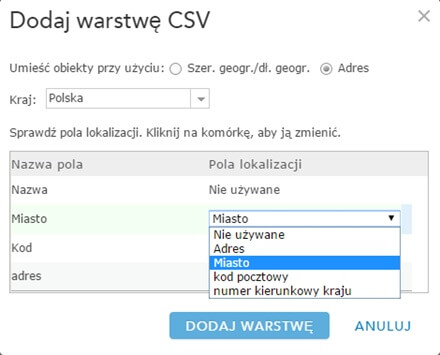 Dodawanie współrzędnych i adresów z plików tekstowych