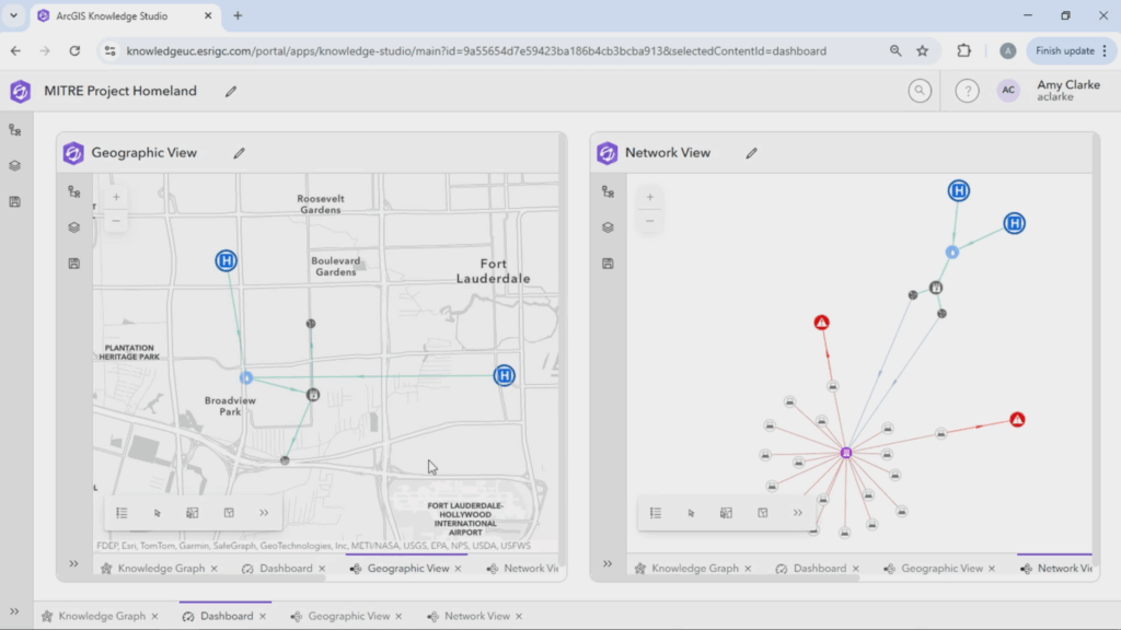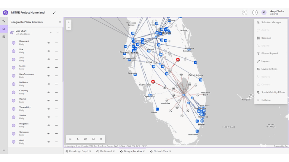 MITRE współpracowało także z Amy Clarke, starszą inżynierką ds. rozwiązań w zespole ArcGIS Knowledge firmy Esri, która wspierała projekt swoim doświadczeniem i doradztwem.